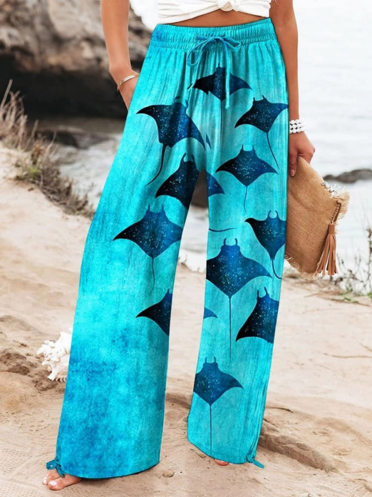 Women's Vintage Manta Rays Art Print Casual Cotton Shirt